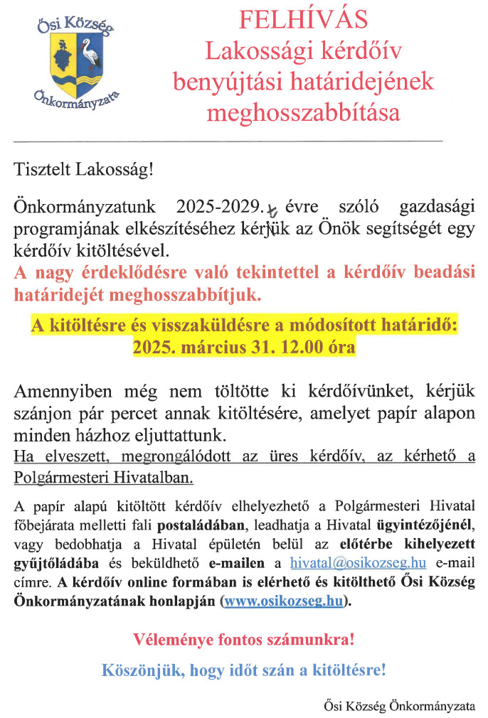 RENDELÉSI IDŐ 2017. január 1-jétől: